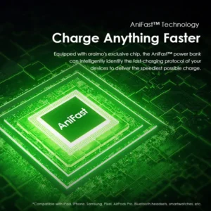 La Oraimo PowerBox 300 – 30000mAh est une batterie externe haute capacité pensée pour les utilisateurs qui exigent autonomie, rapidité et fiabilité. Avec sa capacité énorme de 30 000 mAh et sa technologie AniFast™ 15W, elle assure une recharge efficace et durable de tous vos appareils.